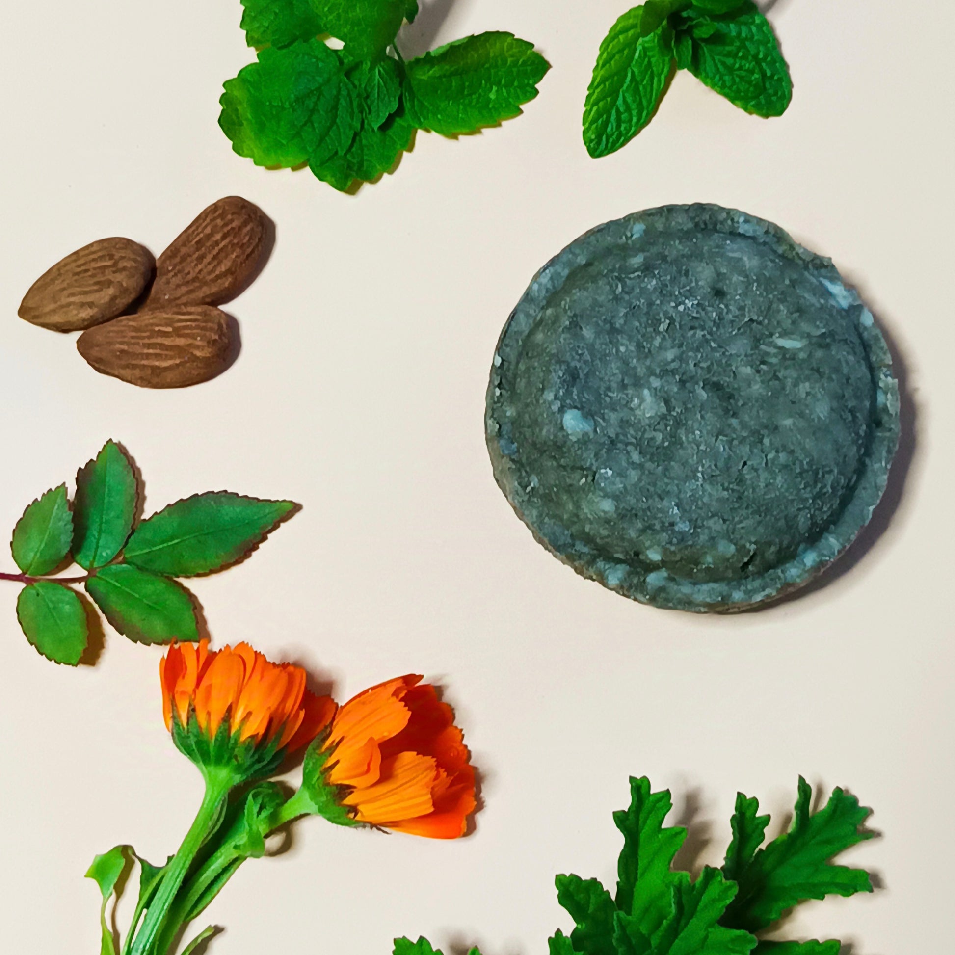 Desliza la pastilla de jabón por cuero cabelludo realizando leves movimientos circulares hasta